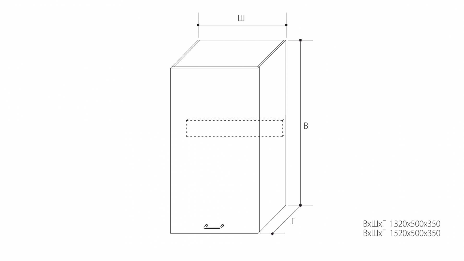 ВхШхГ: 1520х500х350 мм.