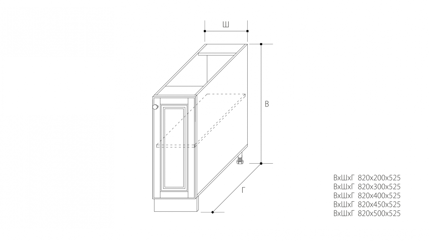 ВхШхГ: 820х300х525 мм.